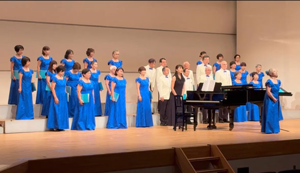 当団は、アカペラで「さびしいカシの木」と「ロマンチストの豚」、混声四部で「鉄腕アトム」を歌いました。指揮は、団内指揮者の吉池陽子さんです。(指揮者の吉川健一先生は、お仕事のためお休み。)